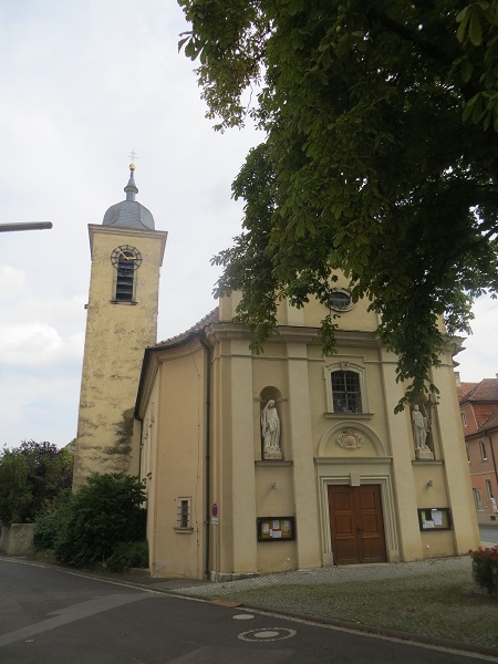 Sulzheim war eine Filiale der Urpfarrei Herlheim, deren Errichtung wahrscheinlich bis zur Gründung des Bistums Würzburg im Jahre 742 zurückgeht. Die Sulzheimer mussten den oft beschwerlichen Weg über den Hahnwald nach Herlheim zum Kirchgang zurücklegen. Auch die Verstorbenen wurden im dortigen Friedhof beerdigt. Im Jahre 1700 gingen der Sulzheimer Schultheiß Hans Hofmann und der Ortsnachbar Ullerich nach Würzburg, mit der Bitte um einen Kapellenbau mit Friedhof in Sulzheim. Am 5. August 1701 wurde dieser Bau, nach einigen Briefverkehr mit Würzburg, vom „Hochwürdigsten des Heiligen römischen Reiches Fürst und Herr, Herr Johann Philipp II. von Greifenklau, Bischof zu Würzburg und Herzog zu Franken“ genehmigt.Aber erst 1722 wurde mit dem Bau begonnen, in der Zeit in der der Bau des Sulzheimer Schlosses fiel (1716-1728). Was kein Zufall war, denn die Baukosten waren für die damalige Zeit relativ niedrig, genau 1818 Gulden, 44 Kreutzer. Der Ebracher Abt gewährte den Sulzheimern zum Kirchenbau ein zinsloses Darlehen von 600 Gulden, ebenso wurde die Geldpacht der Unkenmühle zu diesem Zwecke für 200 Gulden an die Ebracher verkauft.